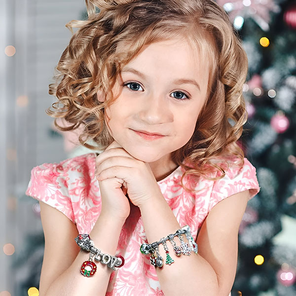 O opțiune excelentă pentru fetele cărora le place să își confecționeze singure bijuteriile. Această brățară servește ca o activitate de artizanat captivantă în timpul petrecerilor, permițându-le fetelor să amestece și să potrivească mărgele și pandantive pentru a-și personaliza brățara unică de Crăciun.