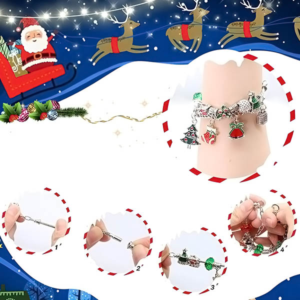 - Un calendar Advent de Crăciun care include 22 de brelocuri și 2 brățări pentru a crea două brățări fermecătoare.