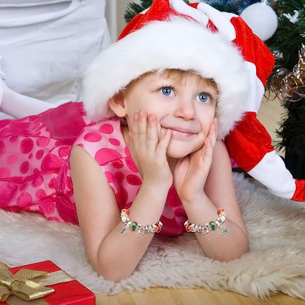 - Brățările adorabile au toate o temă încântătoare de Crăciun, inclusiv Moș Crăciun, bradul de Crăciun, pălăria lui Moș Crăciun, cutia de cadouri, ciorapul, fulgul de zăpadă, coroana, bastonul de bomboane și multe altele.