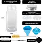Deco Haus Set de 24 de borcane de condimente din sticlă cu etichete și capace (24x120ml) – organizator de condimente, borcane de condimente, recipiente de depozitare a condimentelor