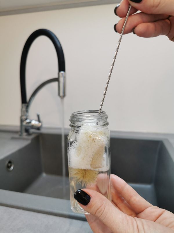 În plus, veți primi și o perie practică de curățare, o pâlnie pliabilă din silicon și 48 de capace de agitator (2 tipuri diferite).